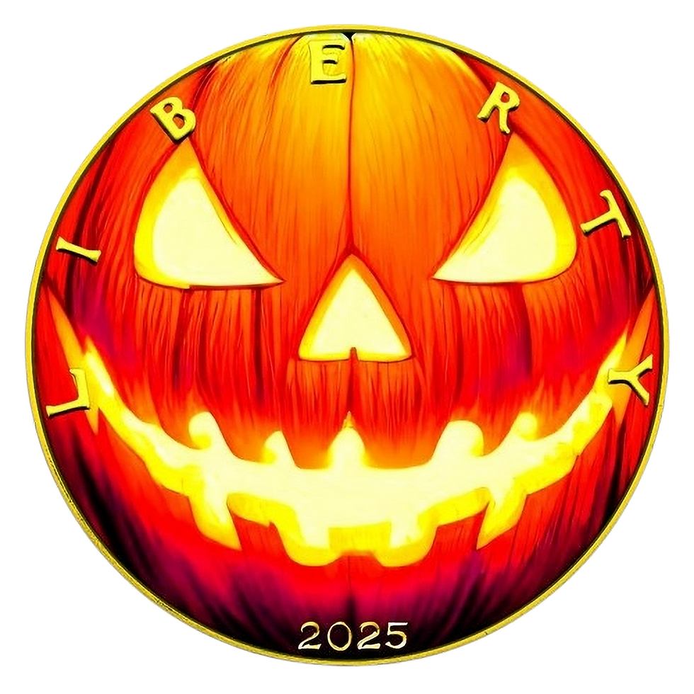Halloween Pumpkin Head 1oz .999 Silver Gold Gilded Colorized Coin 1$ USA 2025