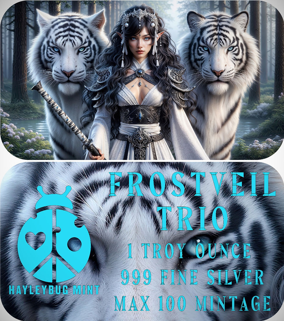 FROSTVEIL TRIO by Hayleybug Mint 1 Troy Ounce 999 Fine Silver Art Bar
