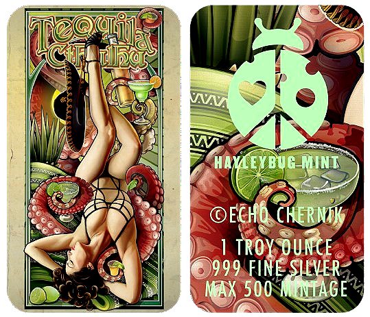 Tequila Cthulhu Colorized 1 oz .999 Silver bar by Echo Chernik