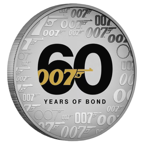 JAMES BOND 60 YEARS OF BOND 1 oz BU Silver Colorized Coin In Capsule Tuvalu 2022