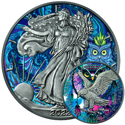 THE OWL Spirit Animal 1oz .999 Silver $1 American Eagle Colorized 2022